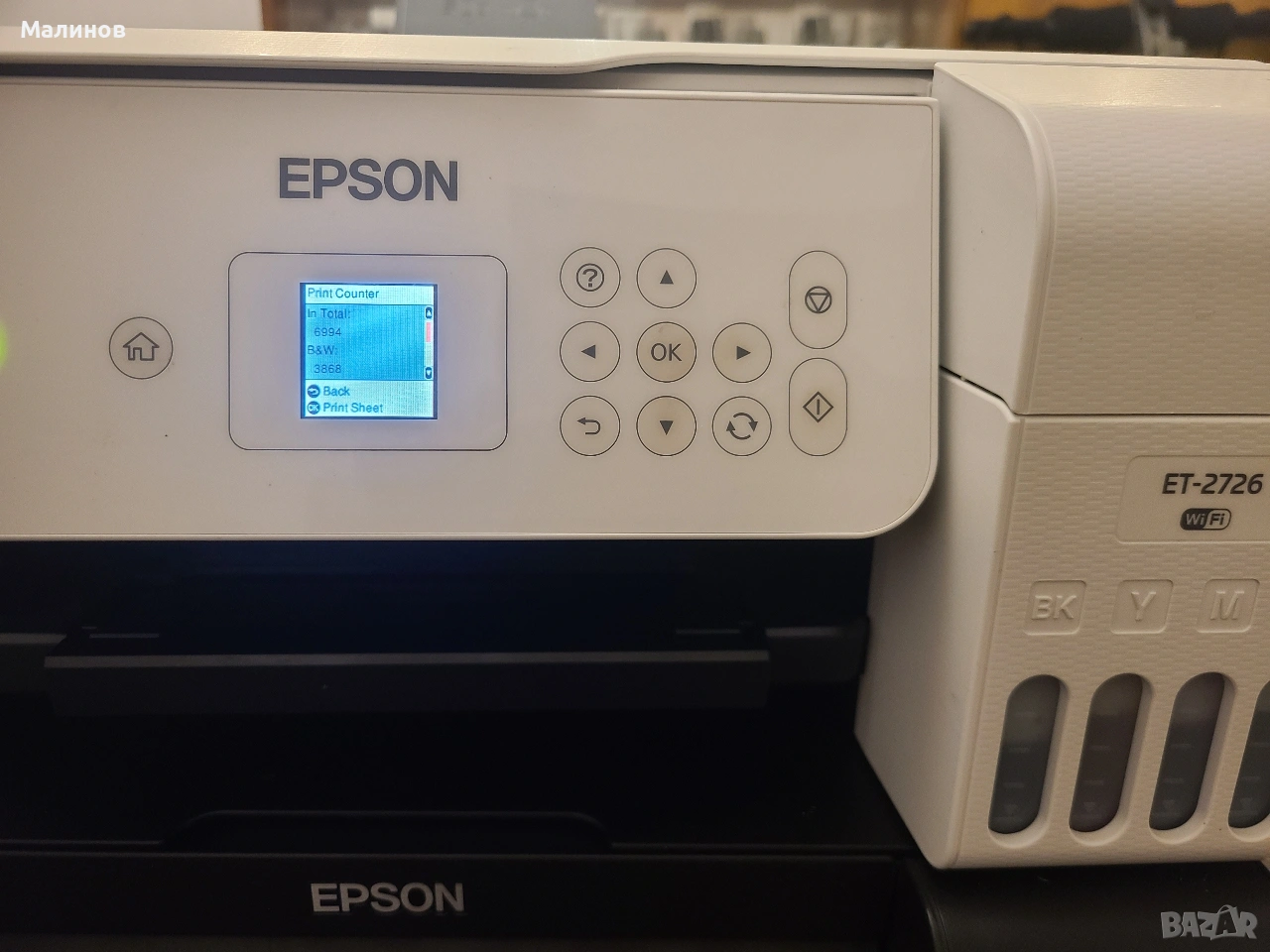 WiFi принтер мостра Epson Ecotank 2726 (3 в 1 - принтер, скенер и копир) за фотопечат или за преработка в принтер за сублимация.