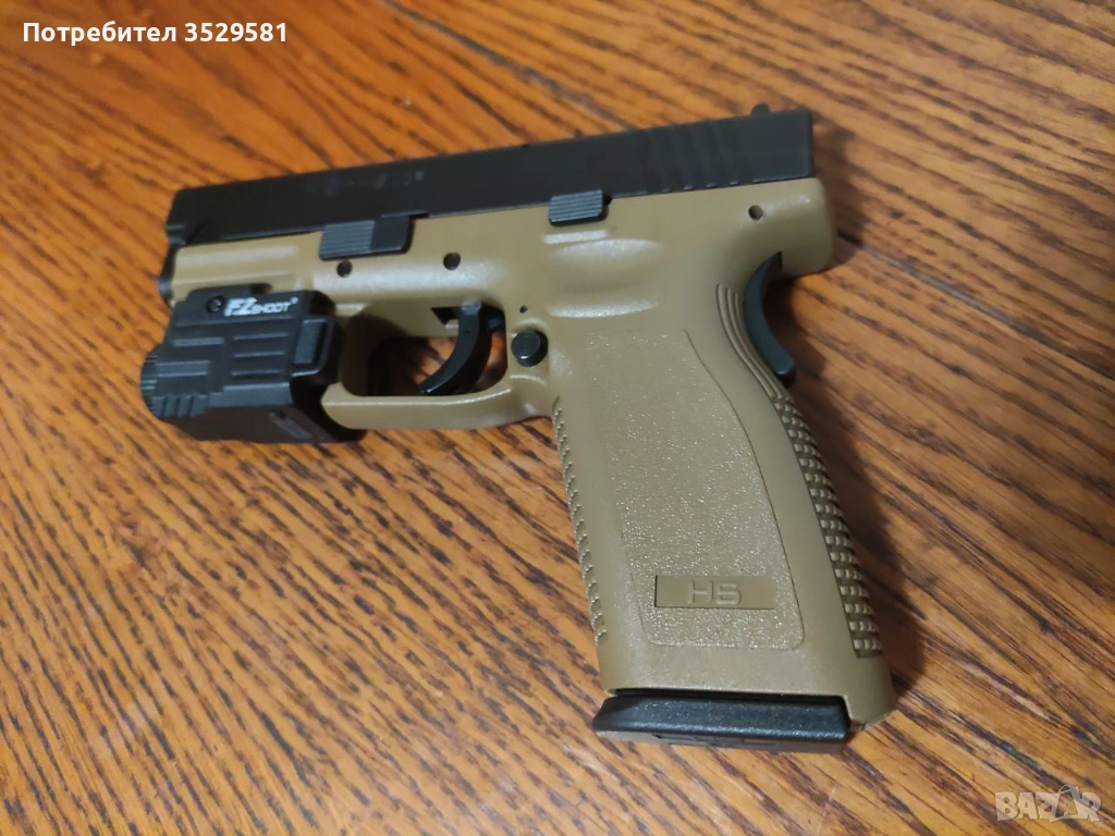 Пистолетът е закупен от ВИП преди 3-4 год. Изстреляни 100 патрона. Няма следи от употреба. Фенера е нов,