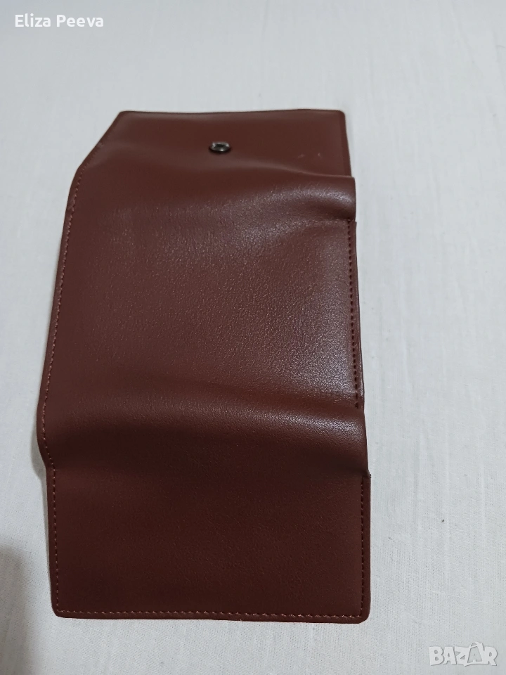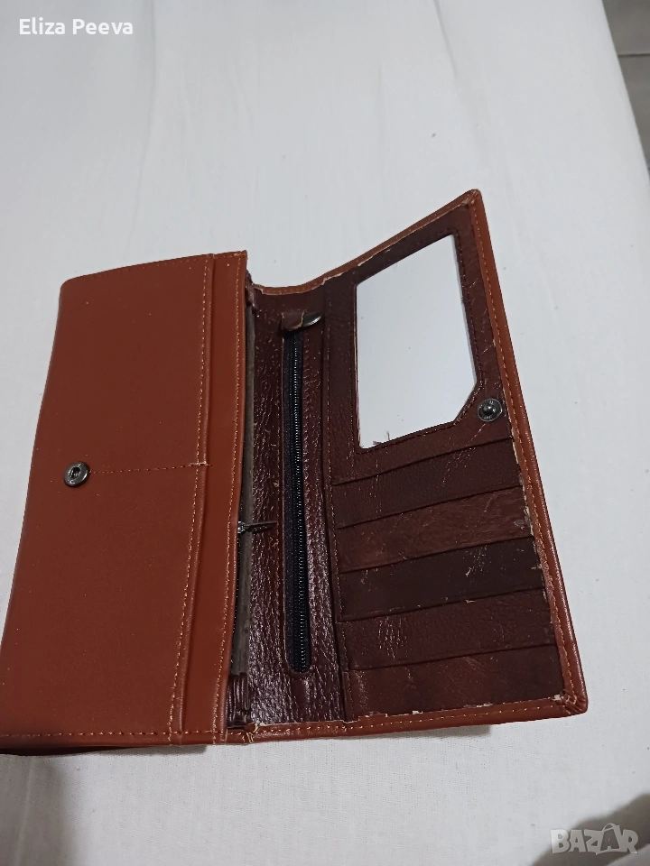 Портмонето е от естествена кожа.Кафяв цвят, с много прегради за карти.