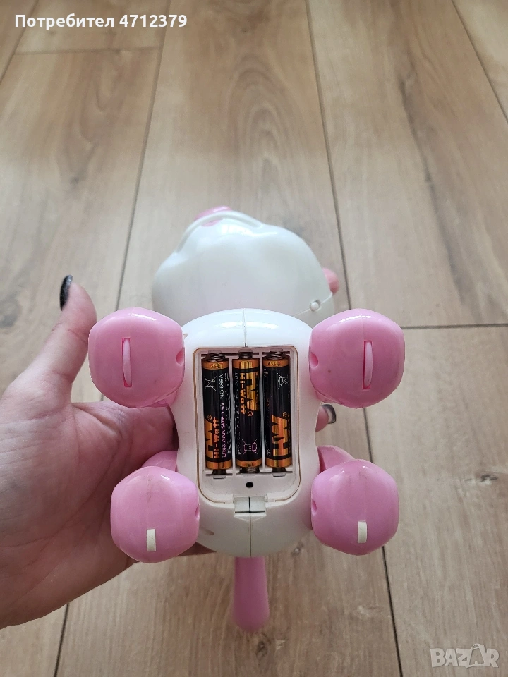 Интерактивно коте което ходи, сяда, хърка и му светат очите. Много малко е играно с него. Няма забележки, единствено ако може да се нарече забележка е че му липсва капака за батерите. Включвам към него и батерии.