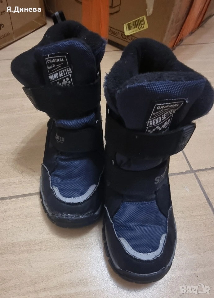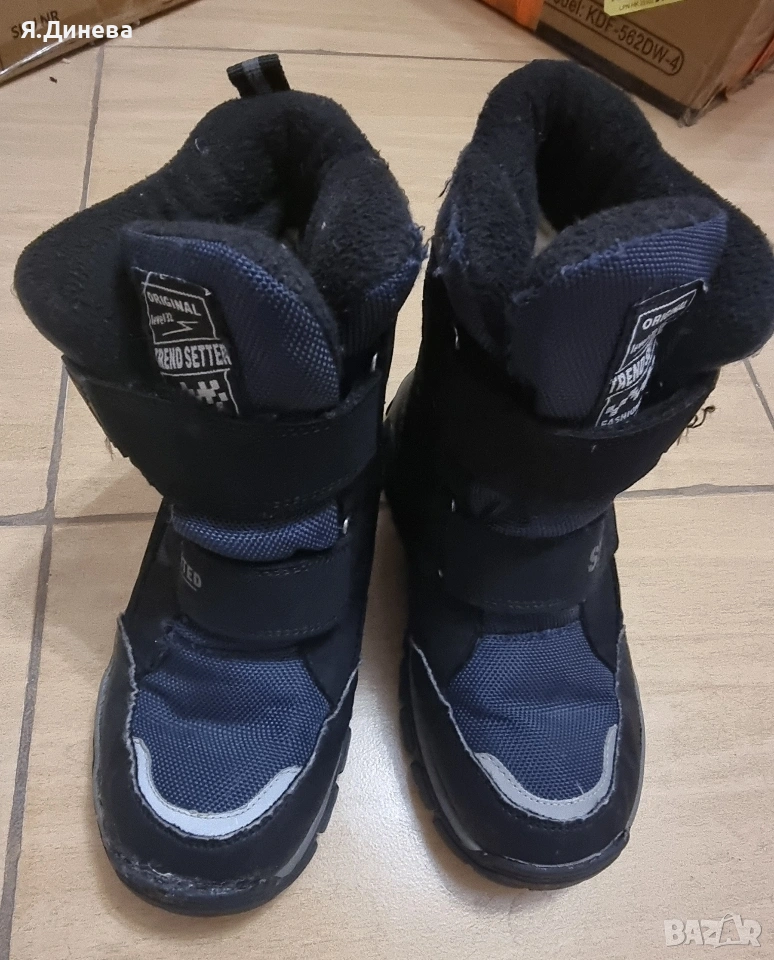 Продавам детски боти за момче 36н в добро състояние, носени са но са доста запазени. Купувани са от мотстар,ботите са високи над глезена.Продаваме ги защото са ни малки в цвят черно и тъмно син цвят. Отвътре имат пух който топли,ботите са с две лепки нямат цип.