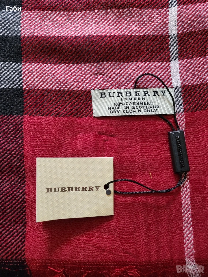 Кашмирен шал Burberry е едно към едно с оригиналния. Има логото на самия шал. 100% кашмир made in Scotland. Наличен само в цвят Бордо. Цената е без коментар, налични 4бр.
