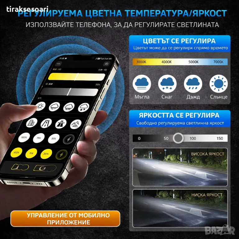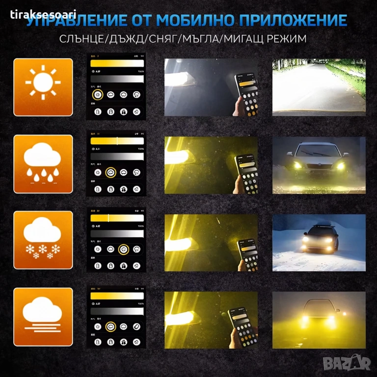 led крушки h4, smart led крушки, h4 dual color, led крушки с приложение, bluetooth led фарове, led крушки 3500k 6500k, canbus led h4, led крушки за къси и дълги, автомобилни led крушки,