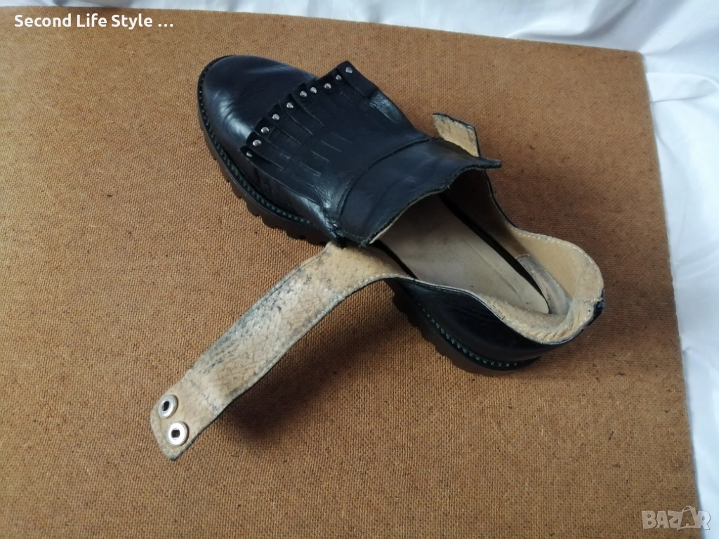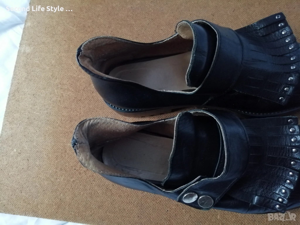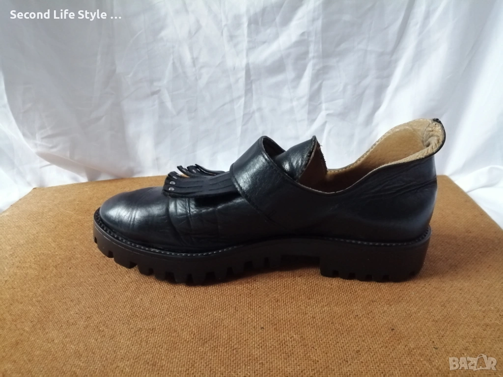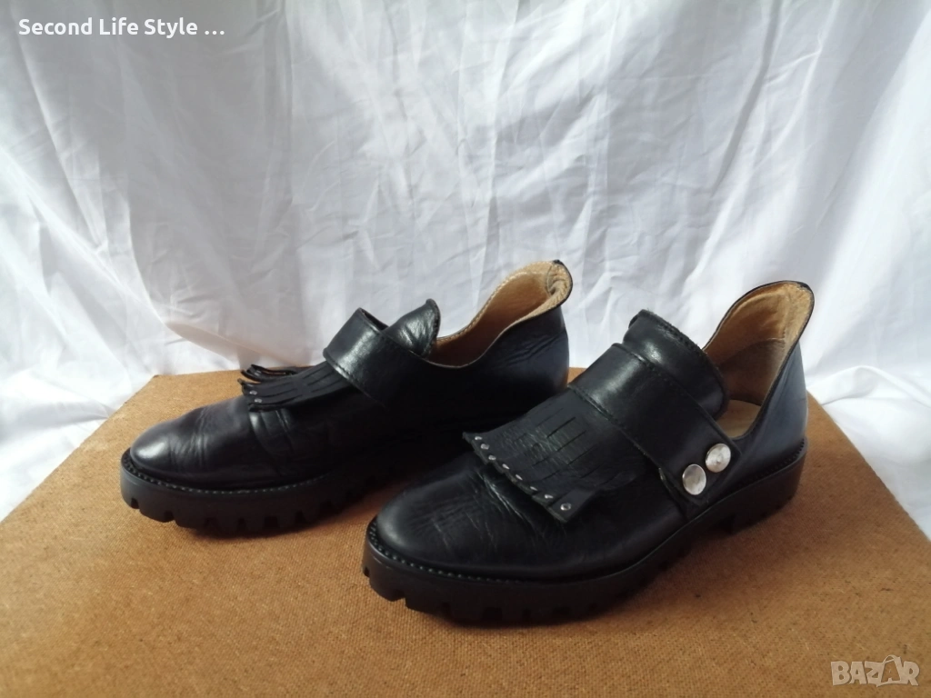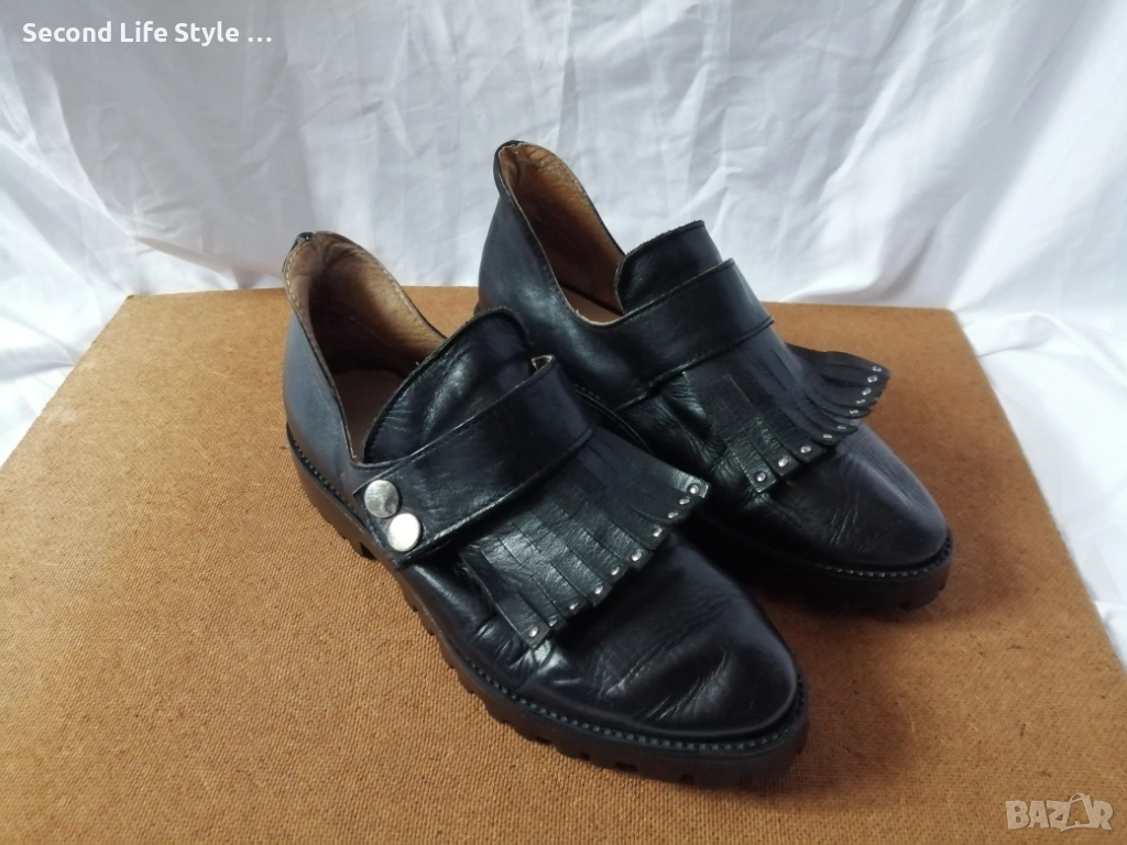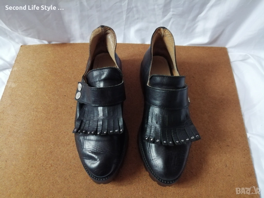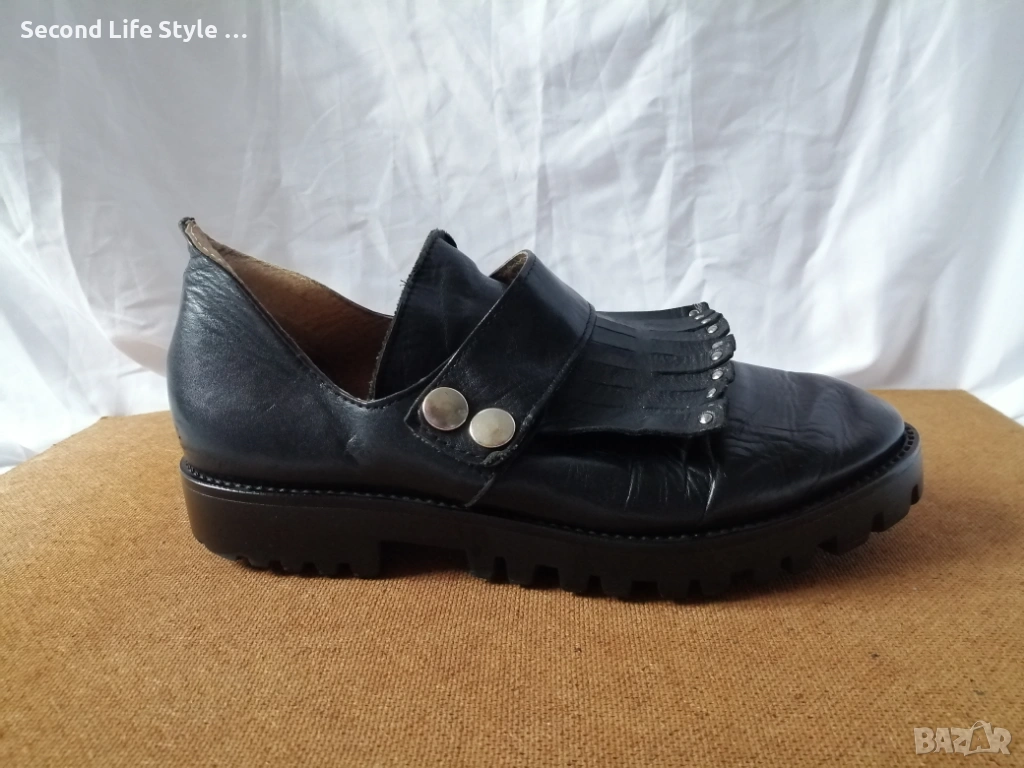 № 37 Дамски обувки естествена кожа - лоуфъри с пискюли, капси, тик-так копчета
