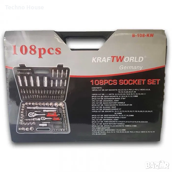 17 броя вложки 1/2'' къси: 10мм; 11мм; 12мм; 13мм; 14мм; 15мм; 16мм; 17мм; 18мм; 19мм; 20мм; 21мм; 22мм; 24мм; 27мм; 30мм; 32мм