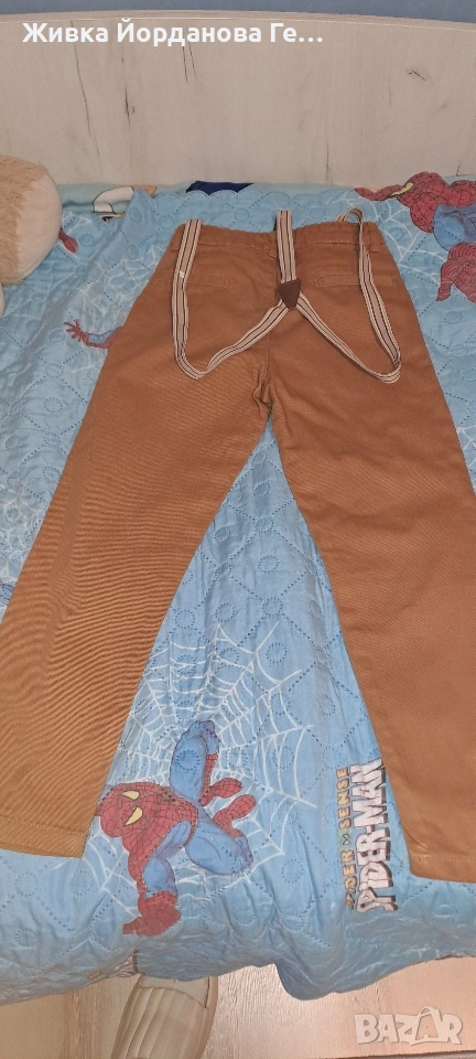 Продавам кафяви дънки с тиранти към тях , размер 134см. 8- 9 години.