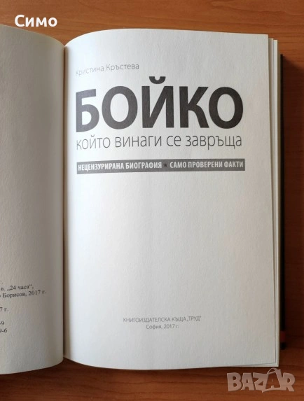 Това е първата подробна, качествена и написана увлекателно и без емоции биография на политика Бойко Борисов.
