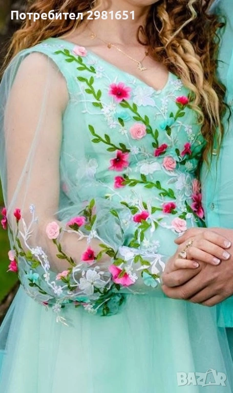 Страхотна рокля с 3 д цветя ушита по поръчка