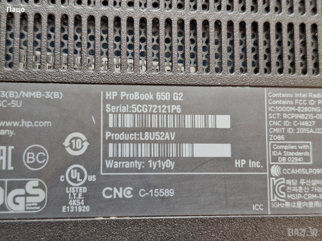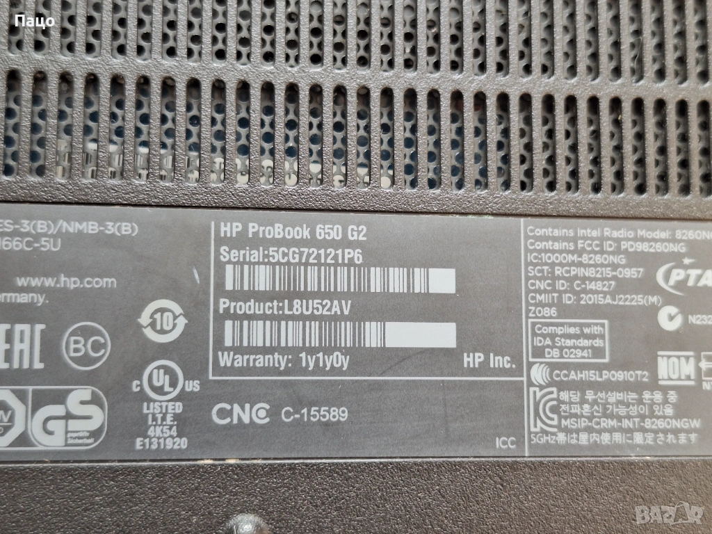 HP ProBook 650 G2/с работещо дъно е,има снимки/с лентов кабел,цената е за всичко на снимките/символична/опция преглед и тест