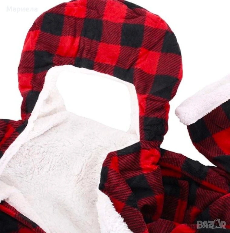 Одеяло с качулка / Дълго одеяло за носене, с джобове/ Цвят: син, червен/ Дължина: 1.08метра → Обява 53144053