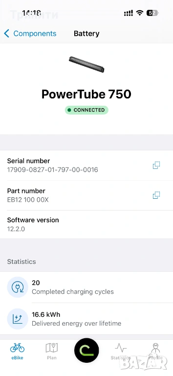 Bosch PowerTube 750 Wh Smart System/хоризонтална смарт батерия/20 цикъла, снимка 1 - Велосипеди - 53144598 Bosch PowerTube 750 Wh Smart System/хоризонтална смарт батерия/20 цикъла, снимка 2 - Велосипеди - 53144598 Bosch PowerTube 750 Wh Smart System/хоризонтална смарт батерия/20 цикъла, снимка 3 - Велосипеди - 53144598 1/3