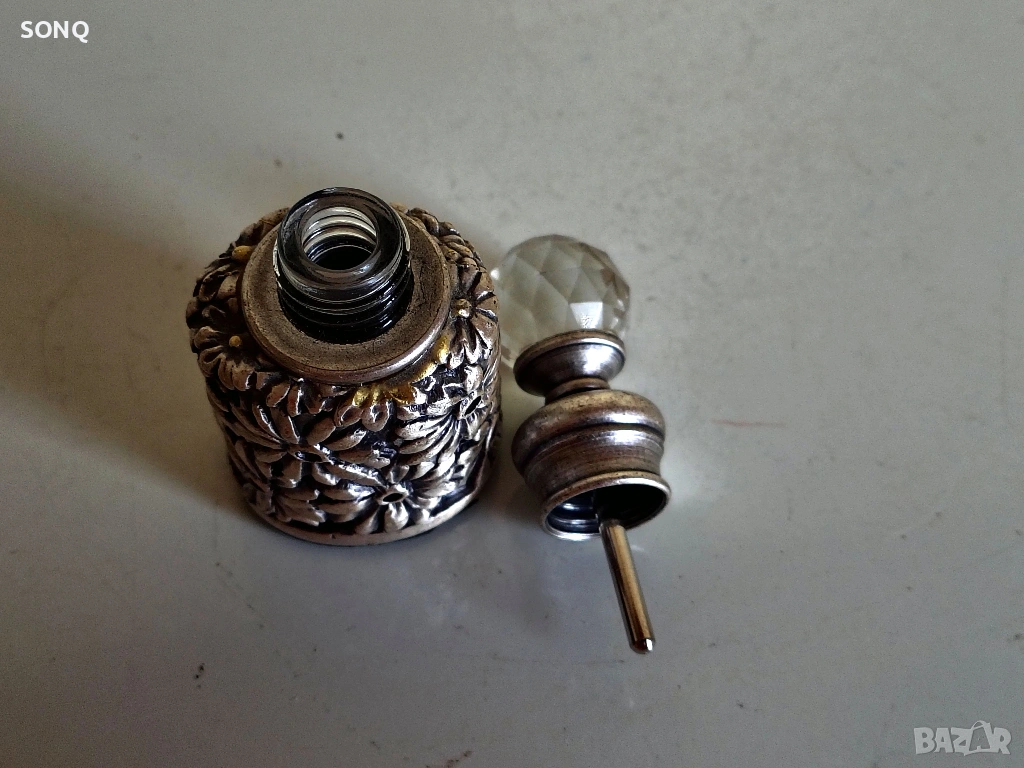 Красива стара изработка със посребрена орнаментика и кристал на капачето. Само за ценители.