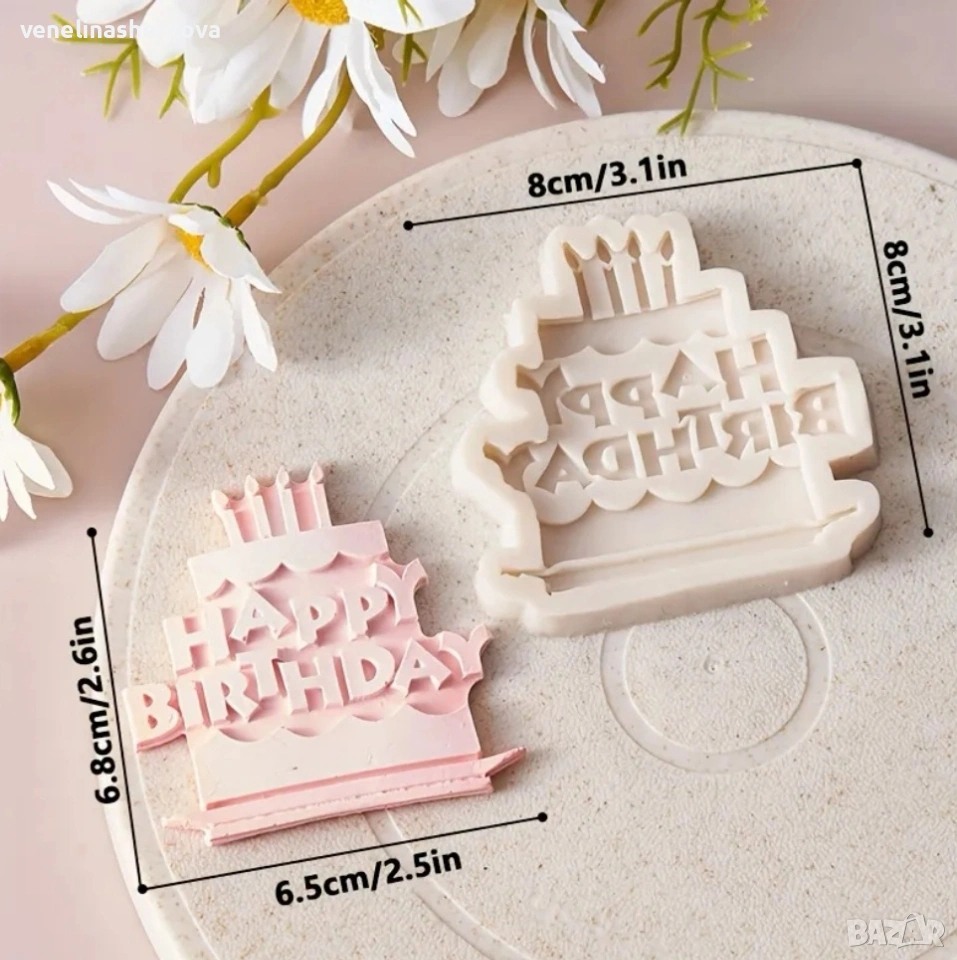 Happy birthday надпис на торта със свещи силиконов молд фондан декорация торта → Обява 53144665