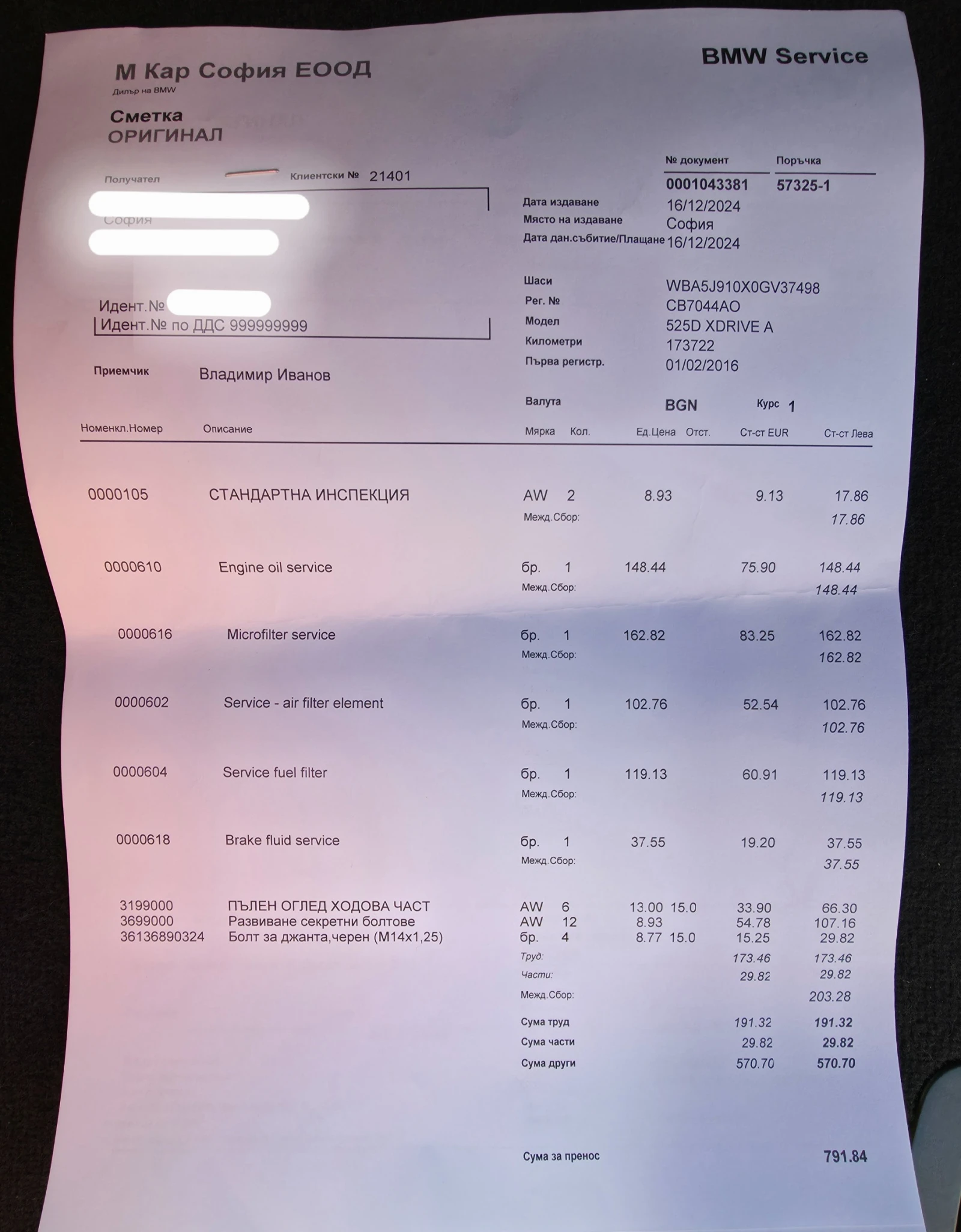 - • Сервизна книжка