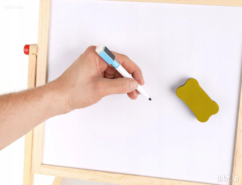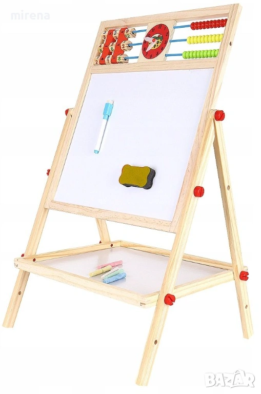 Детската двустранна дъска от Kruzzel ще се хареса на всички малчугани и те ще могат да развихрят въображението и креативността си. От едната страна дъската е черна и е подходяща за рисуване с тебешири, а от другата страна е бяла-магнитна за рисуване с подходящи маркери.