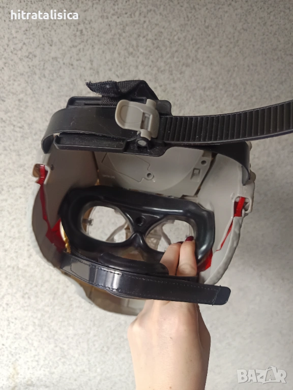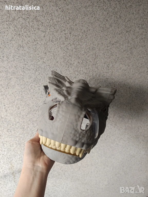 Перфектна е,купавана преди 1год,но така и не е играно с нея. Има кайшки за регулиране като се сложи на главата. Издава звук като се отворят челюстите