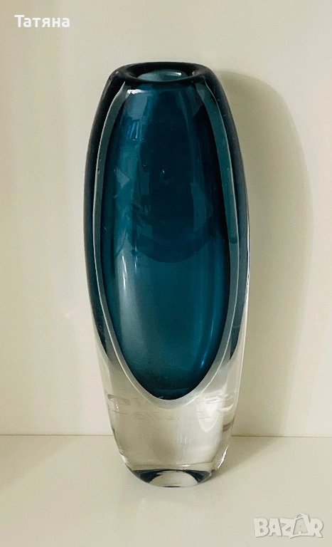 Sommerso за Коста, Ваза, художествено стъкло, VICKE LINDSTRAND,подписана.26 см, Швеция → Обява 53145250