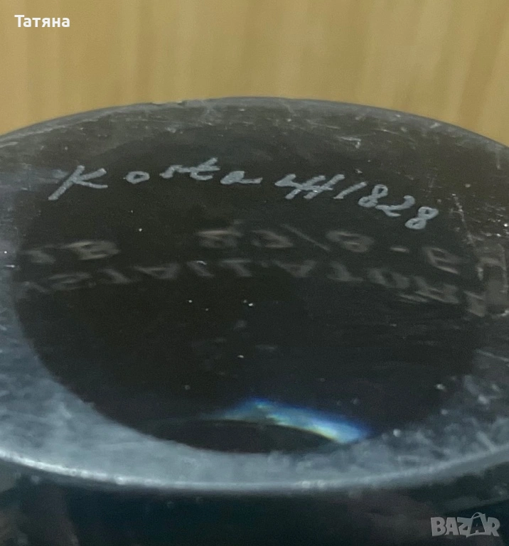 Височина 26 см, тежка, има следи от употреба, отчупване, обозначено със стрелка, драскотини.
