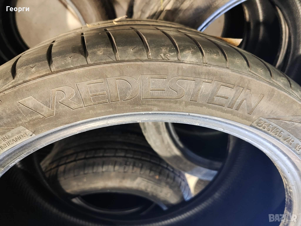 4бр.Vredestein,265/35/19, ДОТ 2219, 5.2mm грайфер.Гумите са перфектни, без забележки, проверени са машинно за кривини, балони !!! Разполагаме с всякакъв размер нова и втора употреба гуми от 14-22 цола за автомобил, джип и бус.