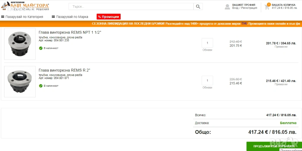 Магазинската цена на 1 1/2'' е 201,78евро и 2'' е 215,46евро двете глави са 417.24евро