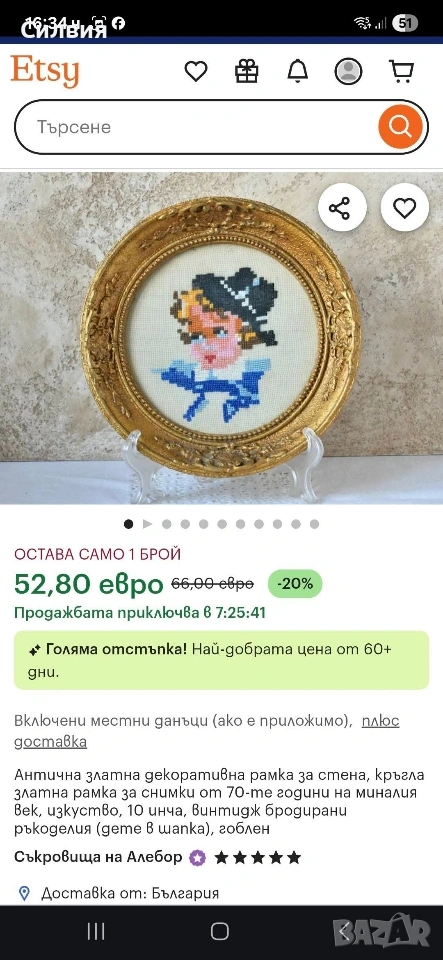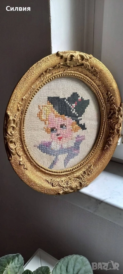 Богато украсена златна рамка добавя нотка лукс към произведението, създавайки завладяващ визуален ансамбъл. Този винтидж бродиран гоблен е повече от просто декорация; той е свидетелство за майсторството на отминала епоха, внасяйки топлина и характер във вашето пространство. Независимо дали сте колекционер или просто търсите уникално произведение на изкуството, тази златна рамка и винтидж бродиран гоблен са възхитителен избор. Украсете декора си с носталгията и елегантността на 70-те години на миналия век и нека тази очарователна аранжировка се превърне в ценен акцент на вашата стена.