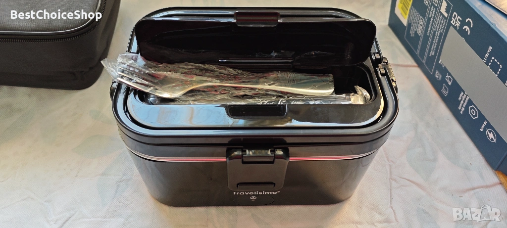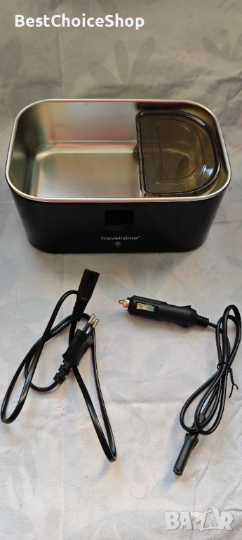 TRAVELISIMO Електрическа кутия за обяд 80W Кутия за храна Топъл обяд, 1.8L Термокутия за храна 3-в-1 Кутия за обяд Електрическа 12V/24V/220V, Термоконтейнер за вкъщи за работа Автомобил Камион Електрическа кутия за обяд