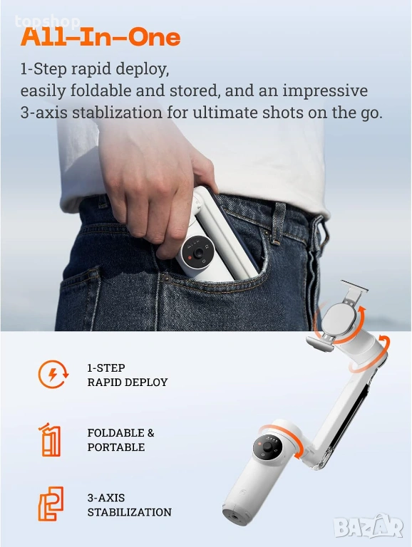 3-осна стабилизация: Професионално гладки кадри, дори при тичане или бързо движение.