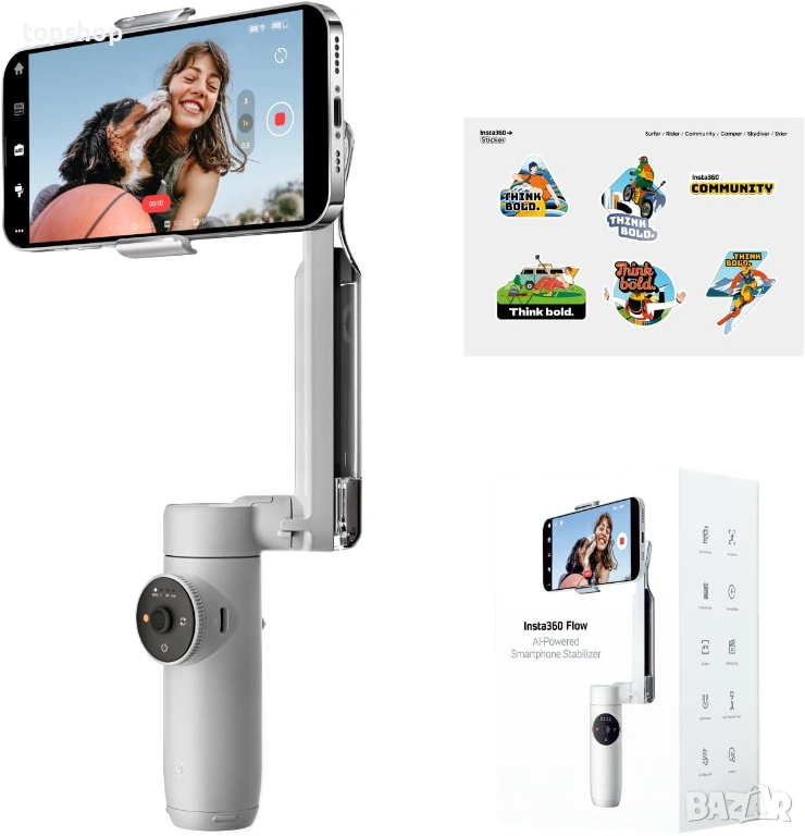 Продавам най-модерния стабилизатор за смартфони на пазара – Insta360 Flow в цвят "Stone Gray" (Каменно сив). Това не е просто гимбал, а цялостно студио за влогъри и създатели на съдържание.