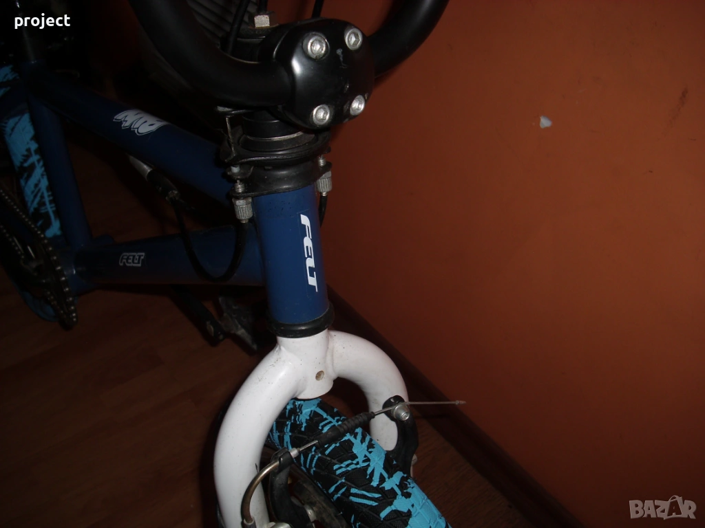 BMX марка FELT с въртене на кормилото на 360 градуса всички компоненти са от най-висок клас!!Атрактивен БМХ велосипед в перфектно техничeско и визуално състояние каран много малко и е много запазен каран само в паркове и градинки и не са извършвани трикове с него.Гуми 20x2,23 цола .Предна и задна спирачка .Всичко работи на 6 и в близките 2-3 години не е нужно нещо да се сменя по него.Велосипеда е подходящ за деца от 6-7г.или ръст от 120см. и нагоре Велосипед високо качество.