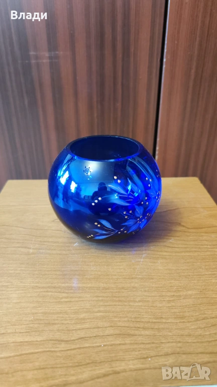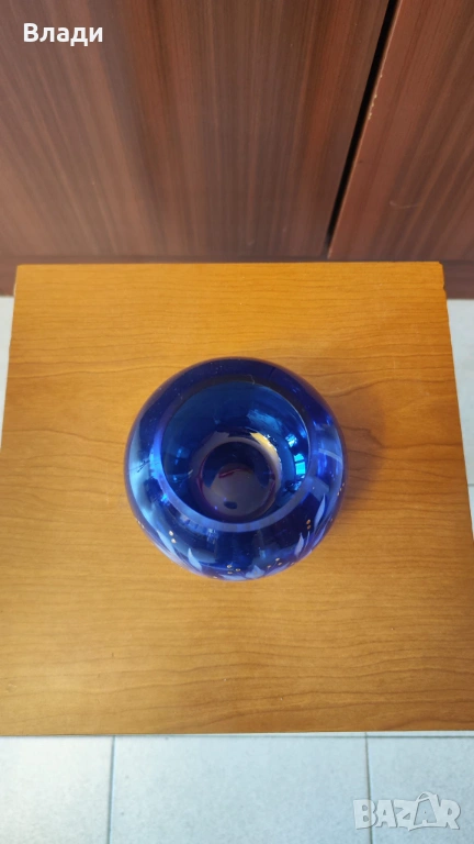 Малка кръгла ваза от тъмно синьо стъкло → Обява 53145777