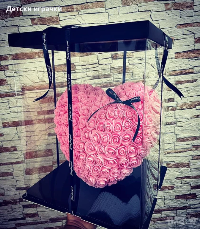 Декоративно сърце от изкуствени рози в подаръчна кутия, романтичен подарък