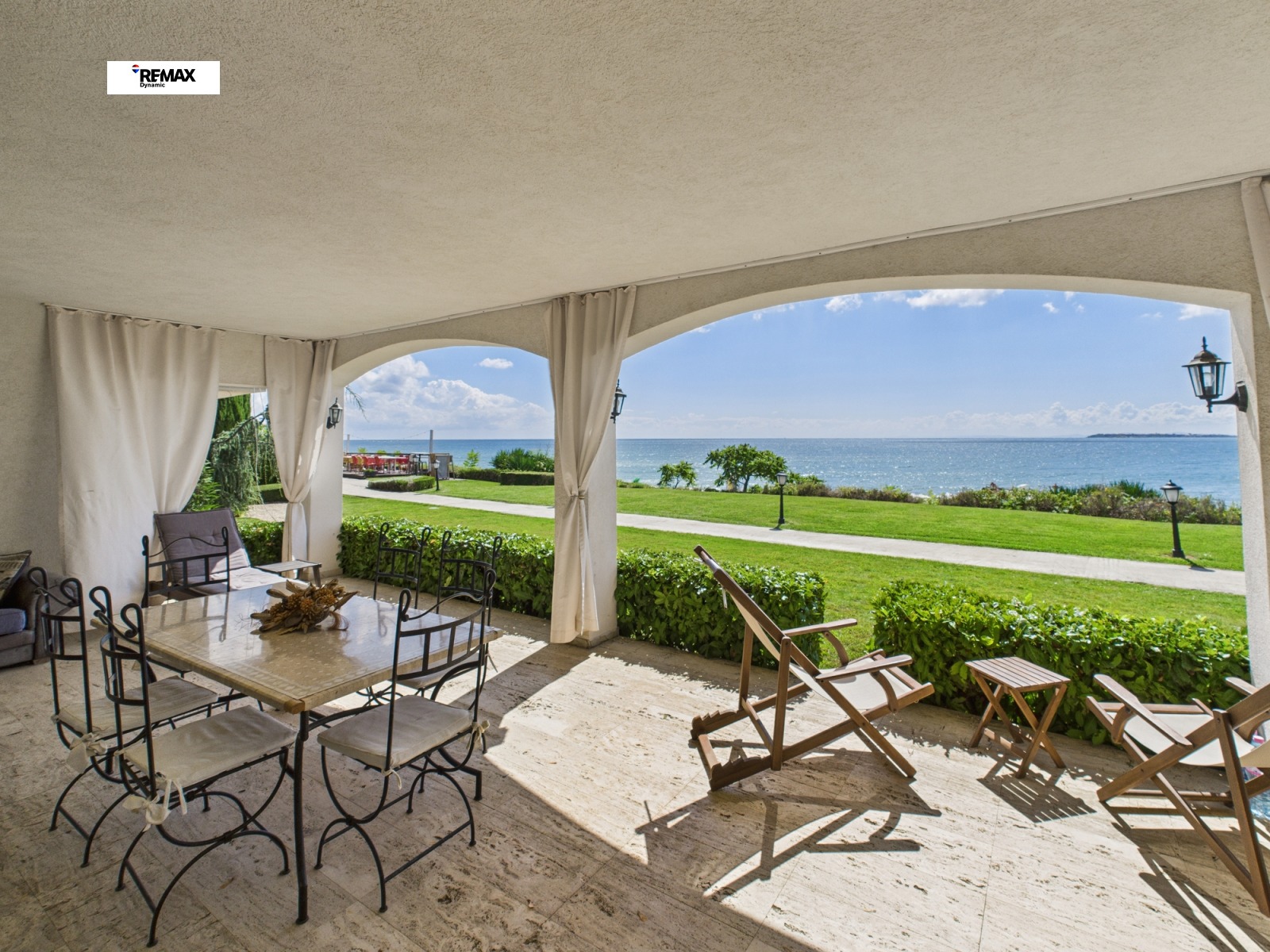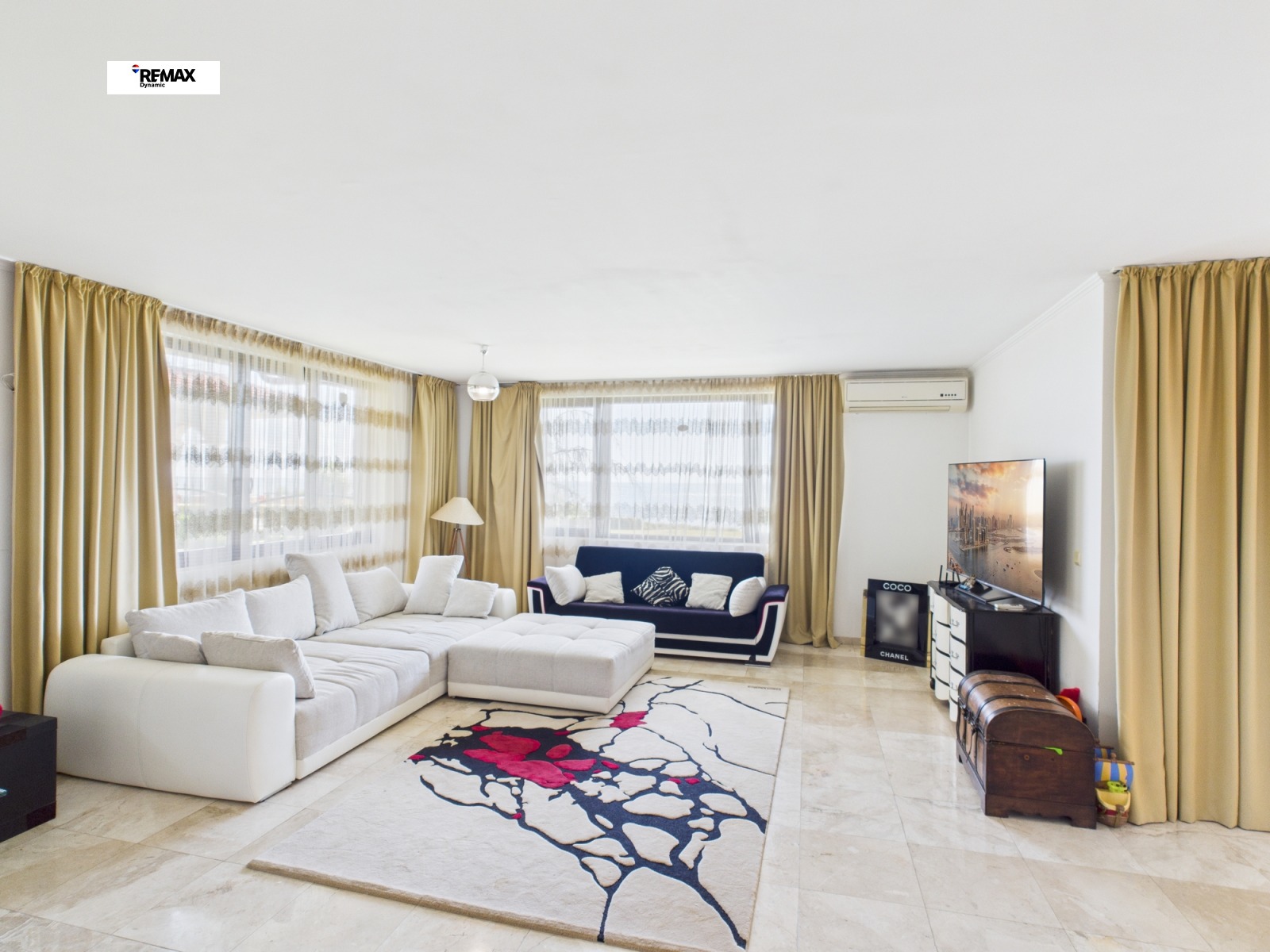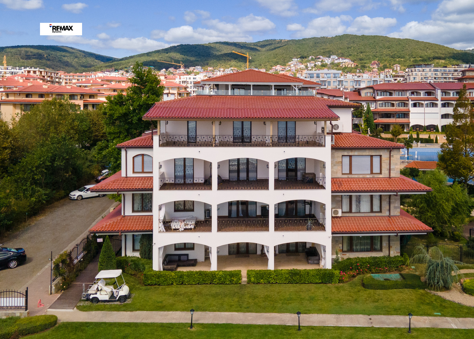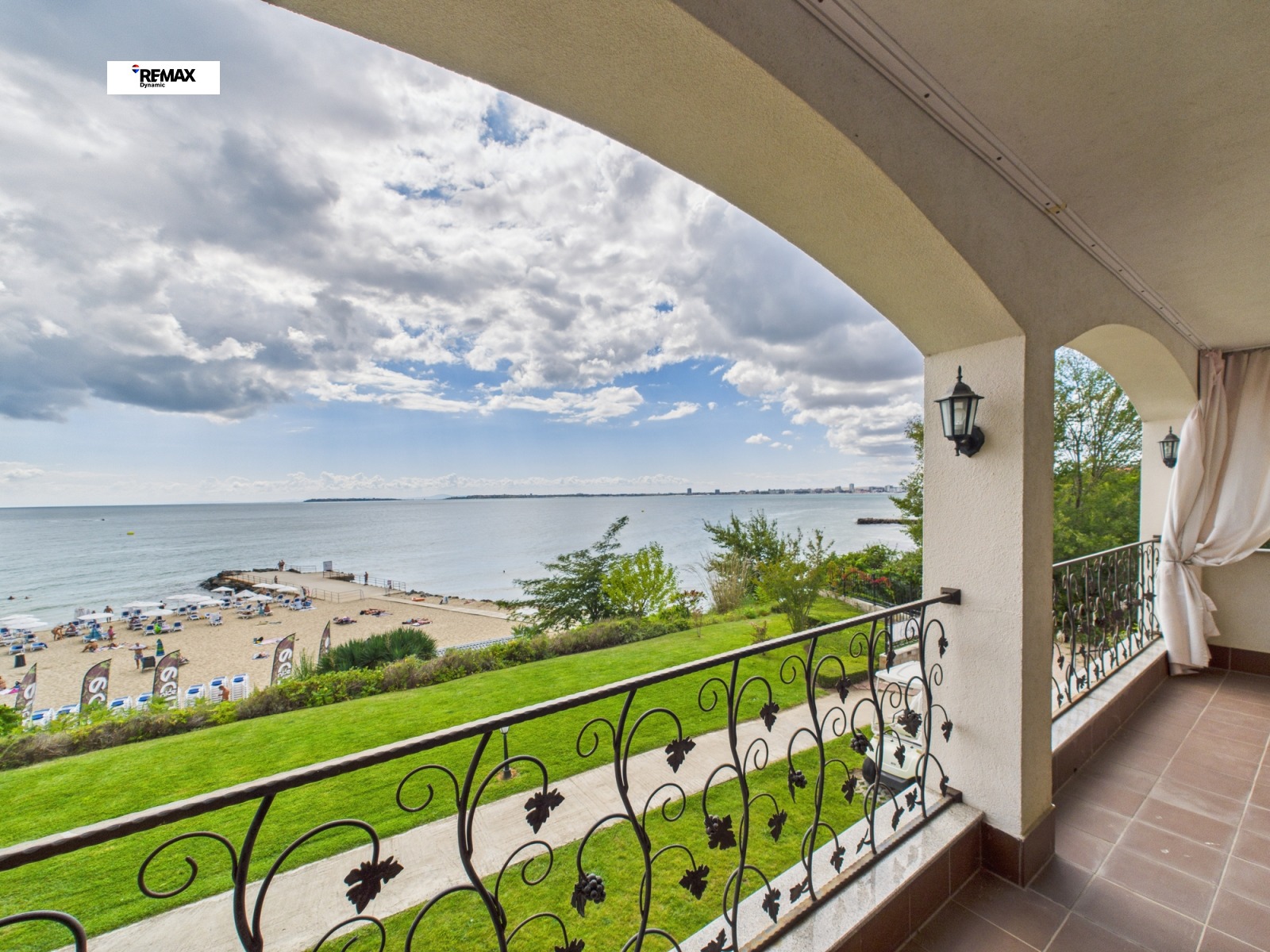 RE/MAX Ви предлага за продажба уникален,многостаен мезонет на два етажа с обща площ 670 кв.м., съчетаващ модерна архитектура, функционално разпределение и усещане за простор и светлина. Имотът се намира на първа линия до морето с прекрасни панорамни тераси и шест самостоятелни спални със санитарни възли.Разположен е на партерен и първи етаж с южно изложение и зашеметяваща панорамна гледка към морето. Апартаментът се предлага напълно обзаведен с всички необходими мебели и уреди. Комплексът е с контролиран достъп и постоянно видео наблюдение и охрана.