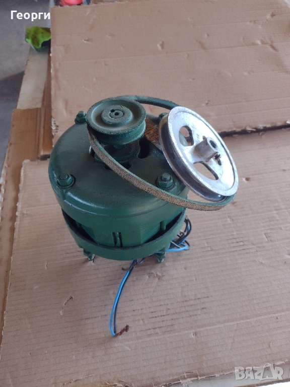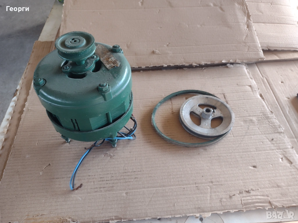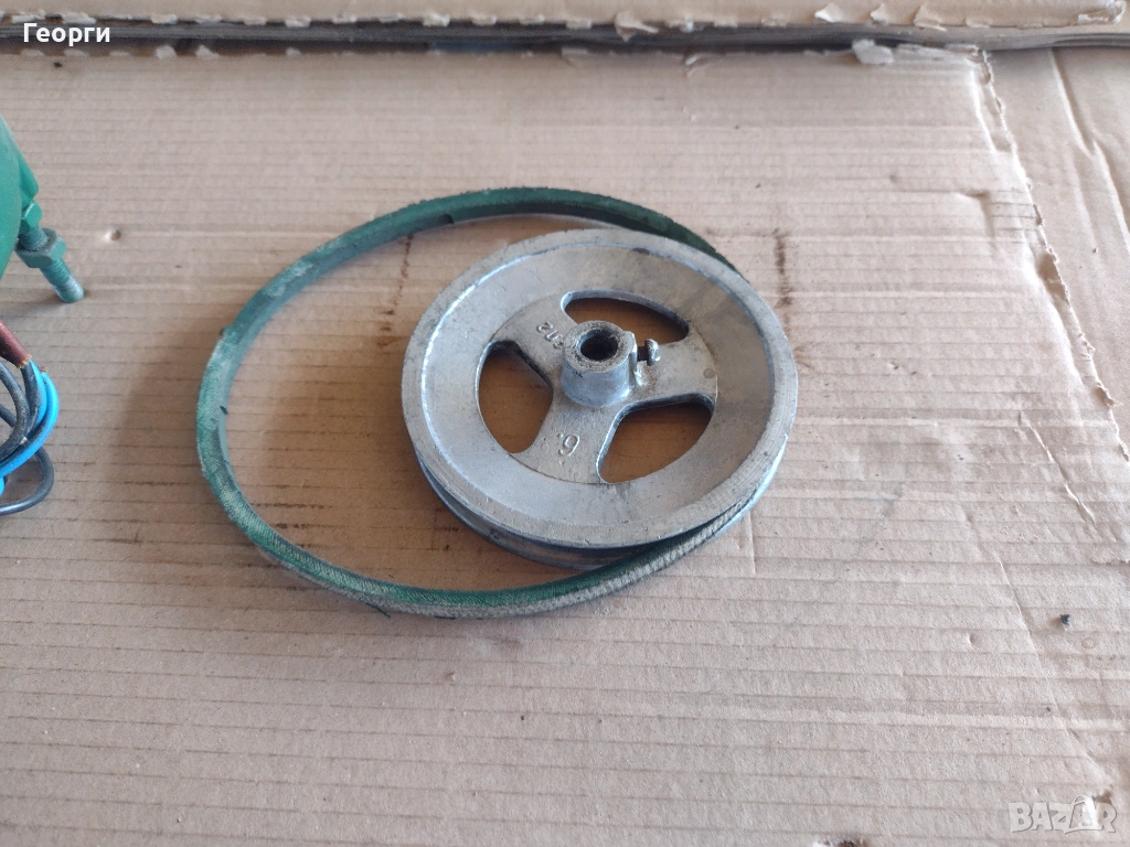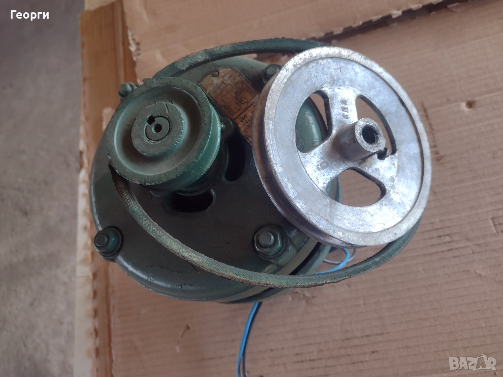 Монофазен електродвигател със шайба на оста на електродвигателя . Със допълнителна алуминиева шайба с ремък .