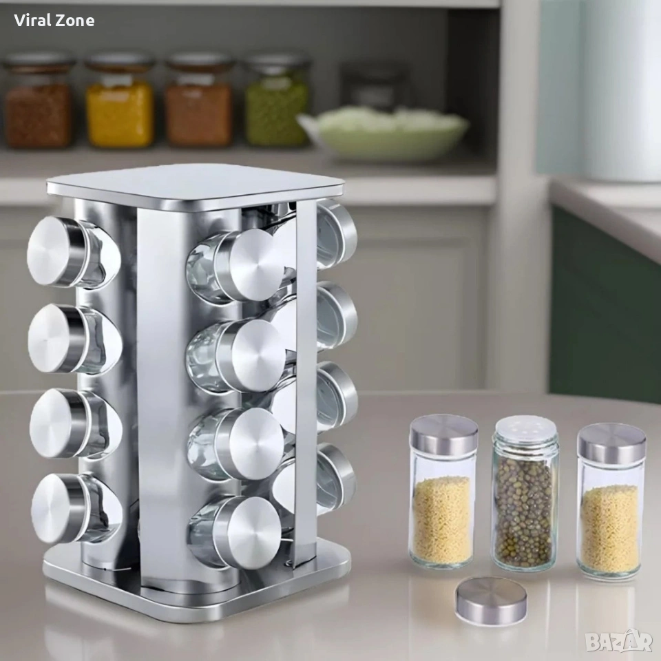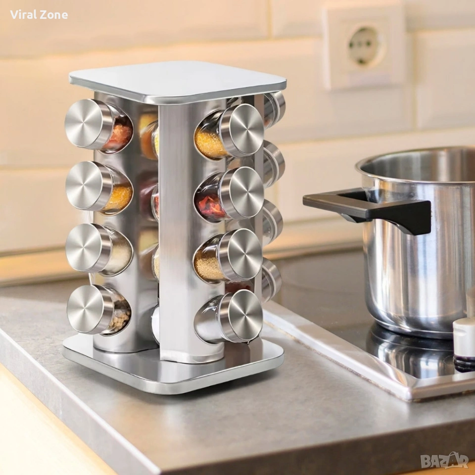 Въртящ се органайзер за подправки Cheffinger - С 16 бурканчета от неръждаема стомана