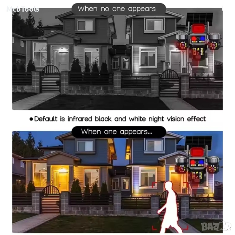 ✔ Соларно захранване + вградена батерия – напълно автономна работа, без нужда от кабели