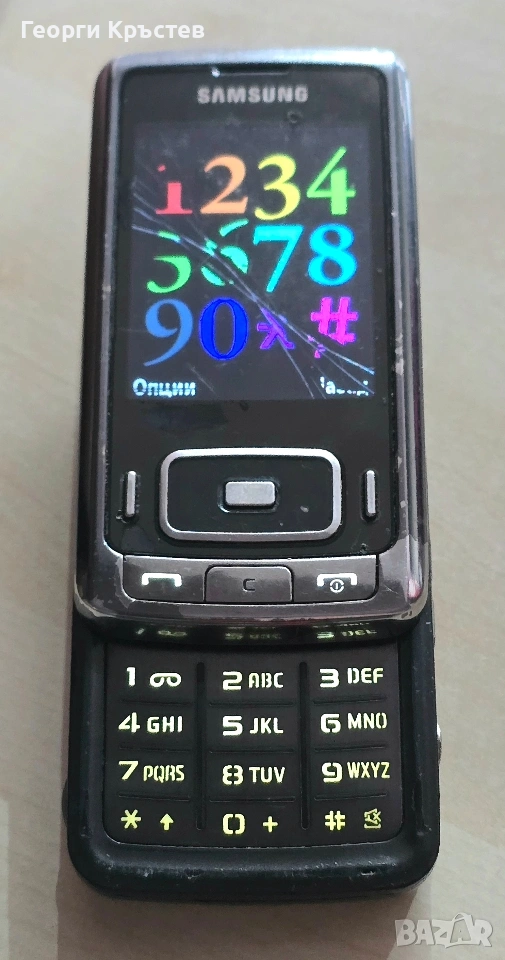 G800 - телефона се включва и работи идеално, тестван с А1, нямам друга за проба, зарежда си батерията, горе - долу добър външен вид, пообелен, клавиатура, подсветка, камера, слушалка, микрофон, всичко е ОК, има БГ меню, активен и стегнат слайд, счупен дисплей, за смяна е, без батерия и зарядно.