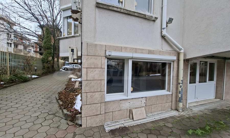 Помещението е с правилна квадратна форма (8 м х 7.50 м), без скосявания, като преградните стени са от гипсокартон и позволяват лесно преконфигуриране според нуждите. Имотът е ориентиран към вътрешния двор, което осигурява спокойствие и липса на уличен шум. С минимални разходи може да бъде възстановен първоначалният му статут на два гаража на едната част са запазени гаражните врати, а на другата са обособени прозорци.
