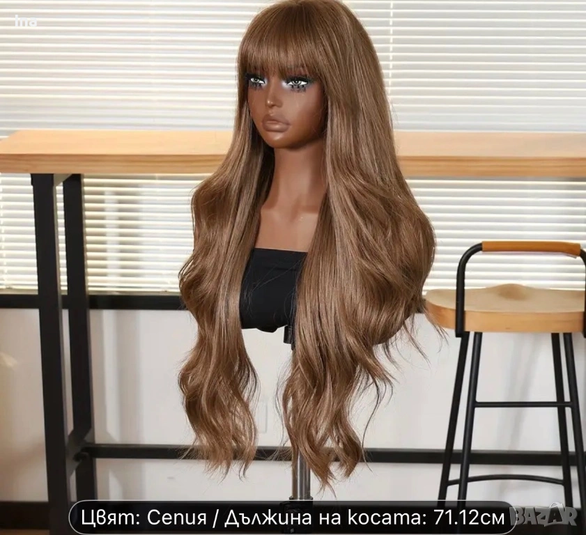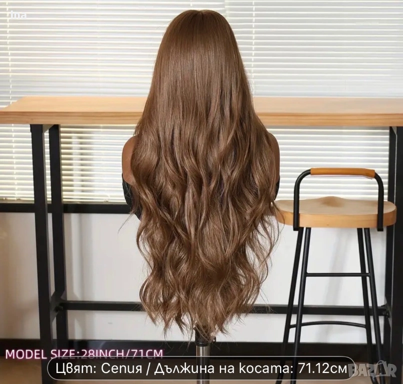 Стилен 28-инчов средно-дълъг чуплива перука с подредени бретон, изработена от топлоустойчиви синтетични влакна. Тази кафява перука предлага естествено елегантно външно въздействие и е дишаща и издръжлива само с поръчка