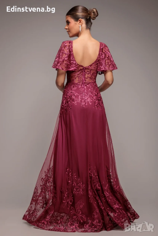 Дамска официална дълга рокля Goddiva от тюл и дантела в цвят бордо, снимка 1 - Рокли - 53147510 Дамска официална дълга рокля Goddiva от тюл и дантела в цвят бордо, снимка 2 - Рокли - 53147510 Дамска официална дълга рокля Goddiva от тюл и дантела в цвят бордо, снимка 3 - Рокли - 53147510 Дамска официална дълга рокля Goddiva от тюл и дантела в цвят бордо, снимка 4 - Рокли - 53147510 1/4