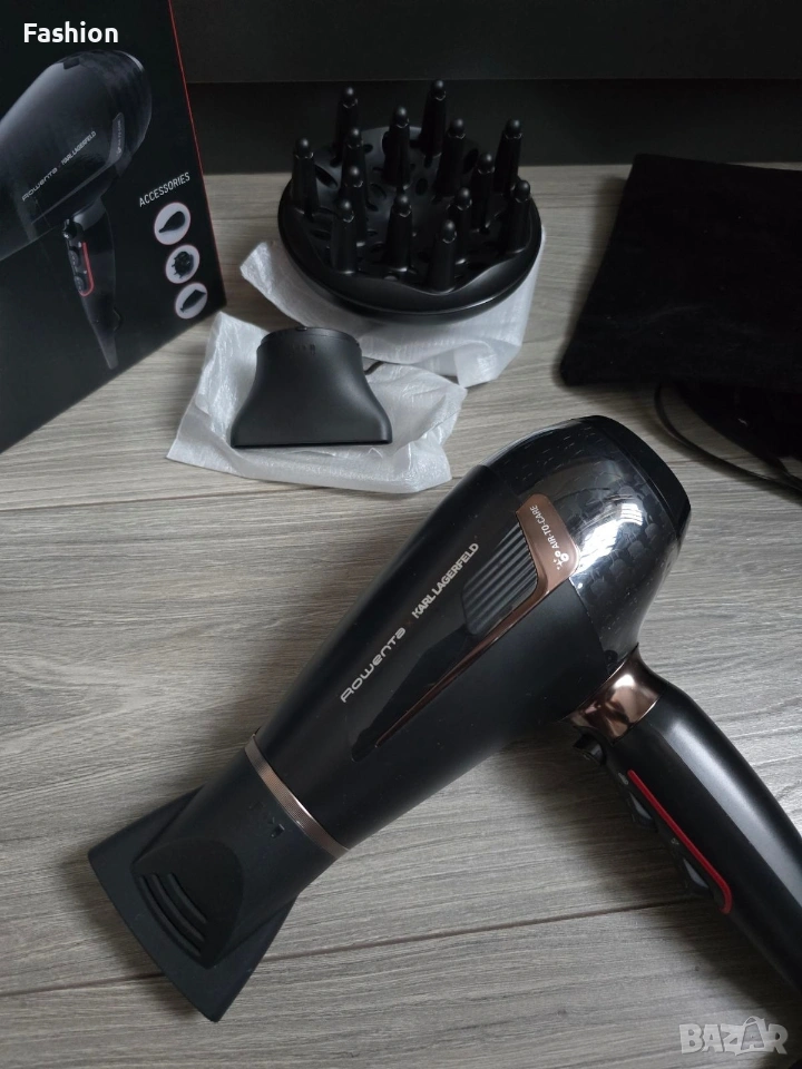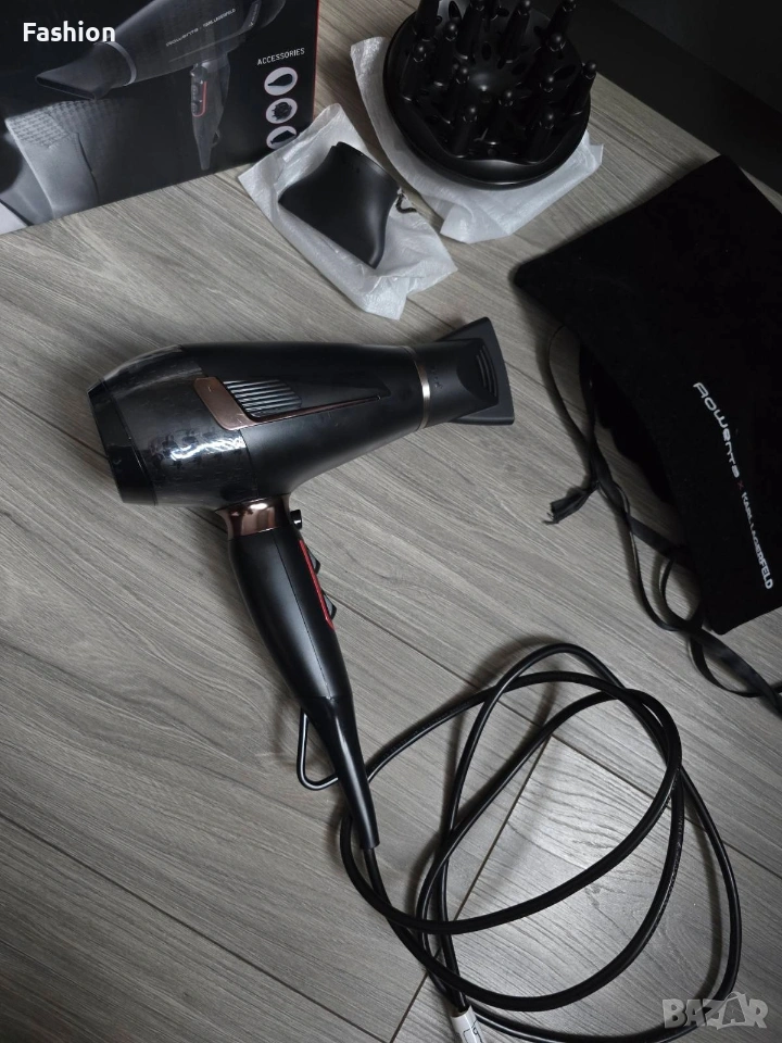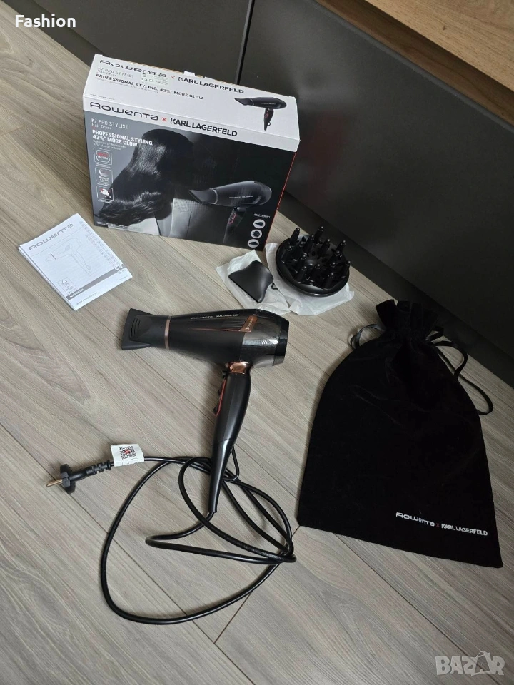 Сешоар Karl LAGERFELD x Rowenta K/PRO STYLIST. С три вида приставки. Като приставките - за изправяне и дифузер са чисто нови. С оригинална кутия и торбичка за съхранение/пренасяне. Без забележки. Работи перфектно. Изпращам с преглед и тест преди заплащане в офис.