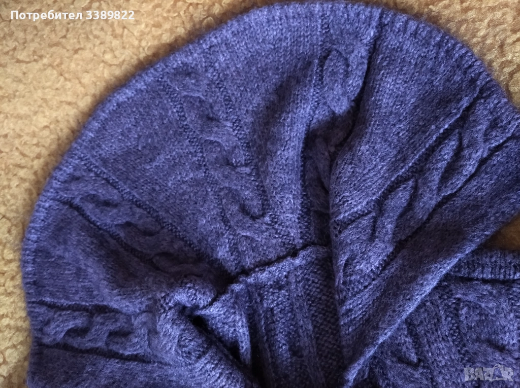 Дамска жилетка - т. лилав цвят, има яка, дължината от рамото до долу 95см, дължина на ръкава 71см, гръдна обиколка едностранно 50см, размер L.