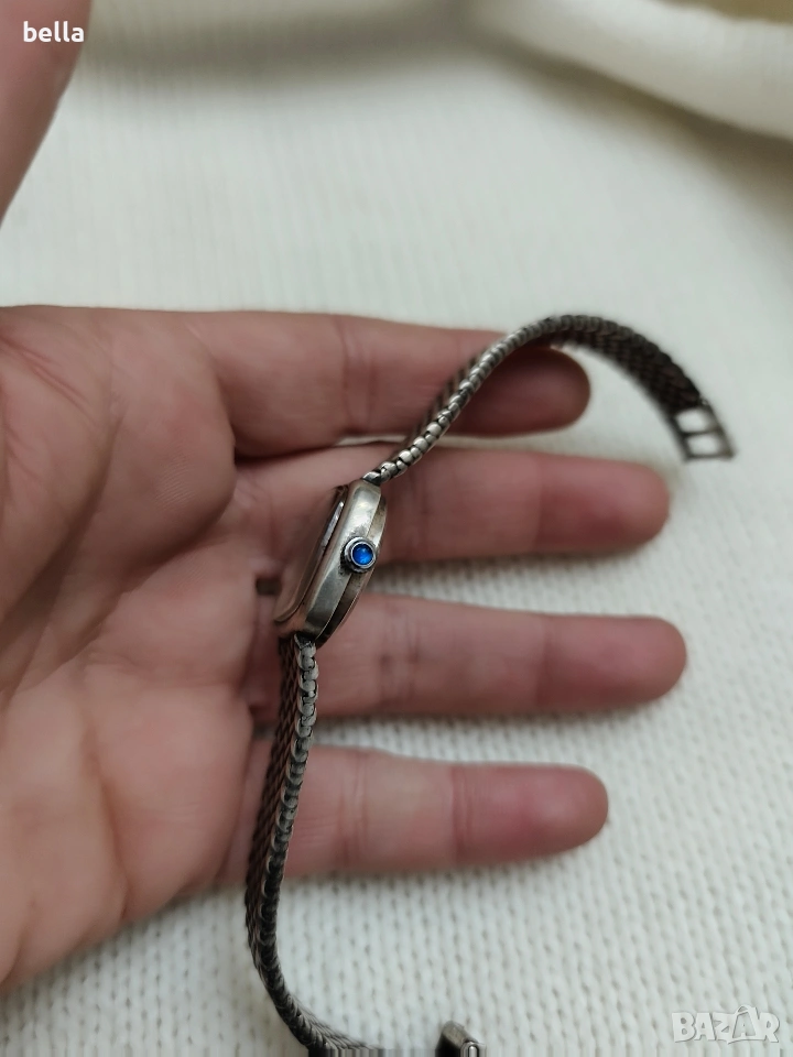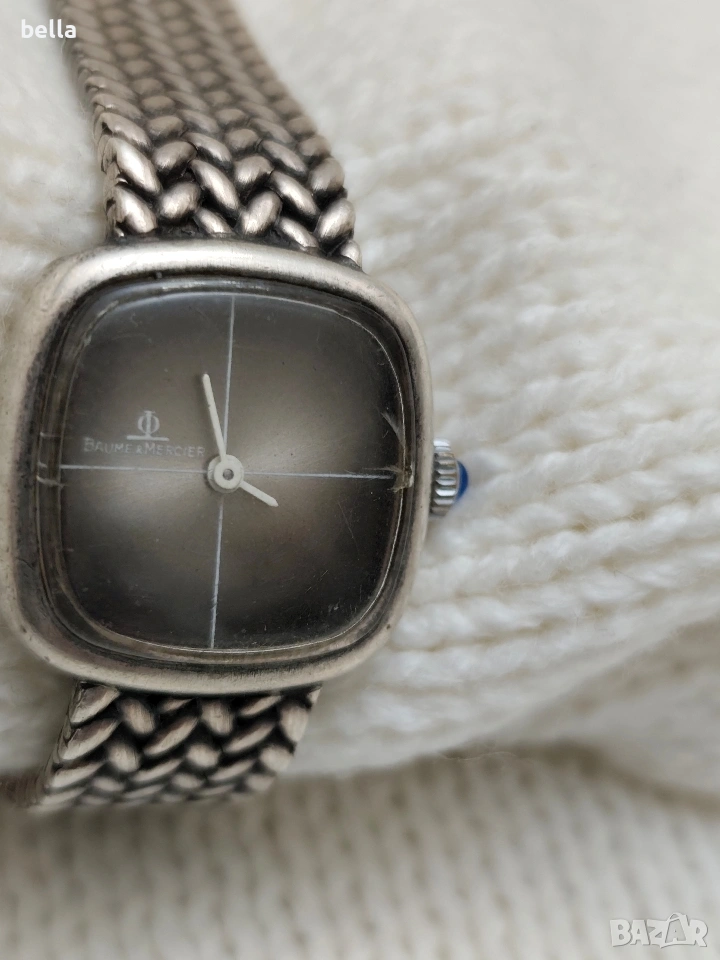 BAUME & MERCIER-Сребърен дамски часовник,сребърна верижка с интересна масивна плетка 800 проба → Обява 53148330