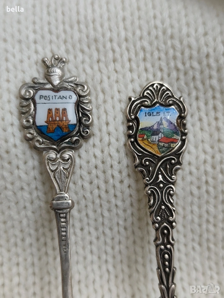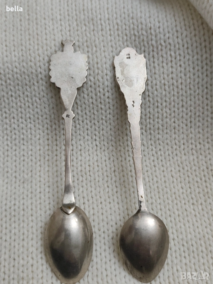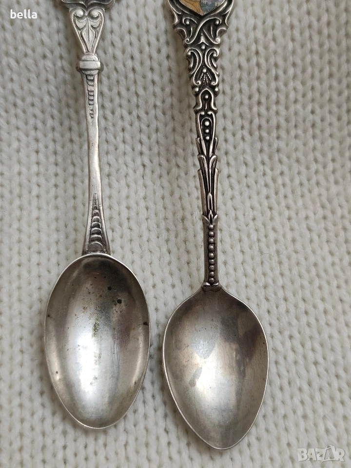 2 Сребърни стари лъжички с емайл ,др → Обява 53148350