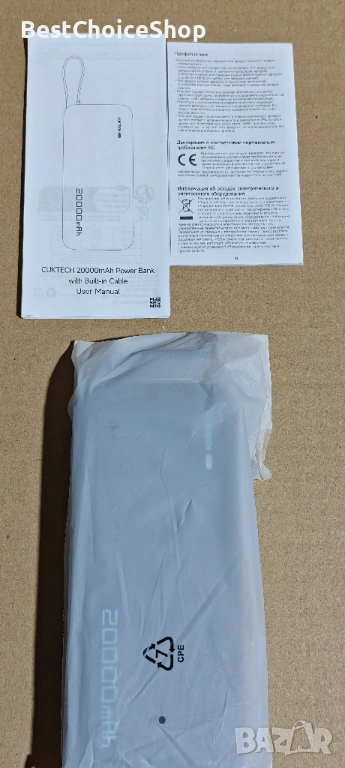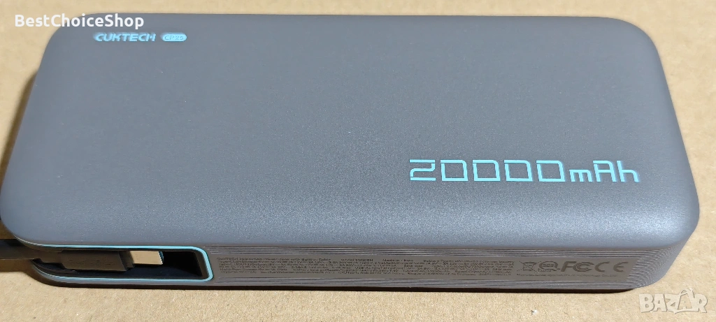 CUKTECH 45W 20000mAh Пауърбанк с Вградени Кабели, Бързо Зареждане – USB C Портативно Зарядно