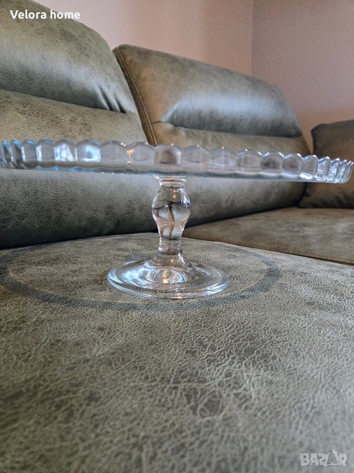 Уникален, стъклен поднос / поставка за цяла торта със стъклен купол.