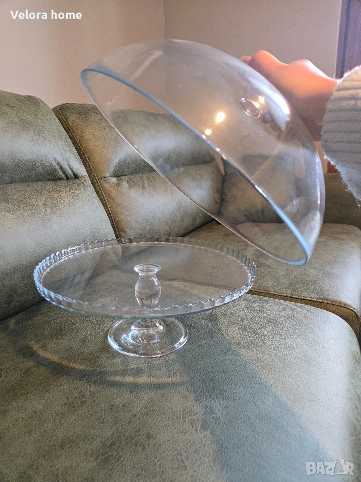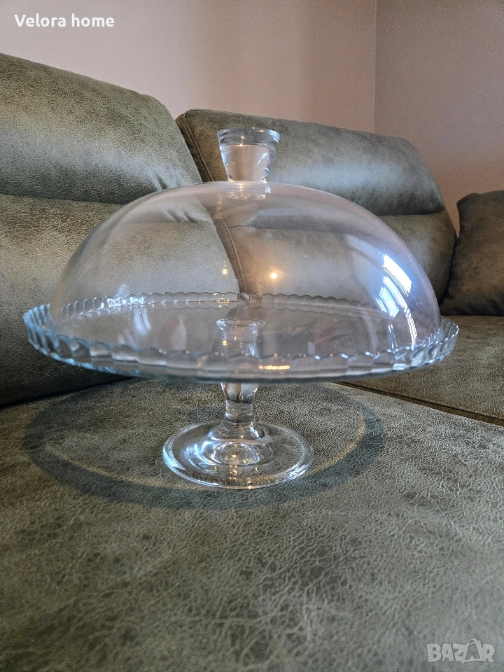 Стъклена поставка с купол за торта