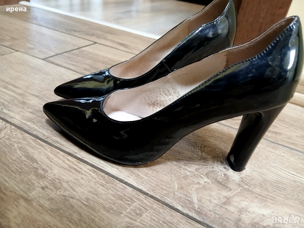 Обувките са лачени.Много елегантни и удобни.Обувани са два пъти за повод