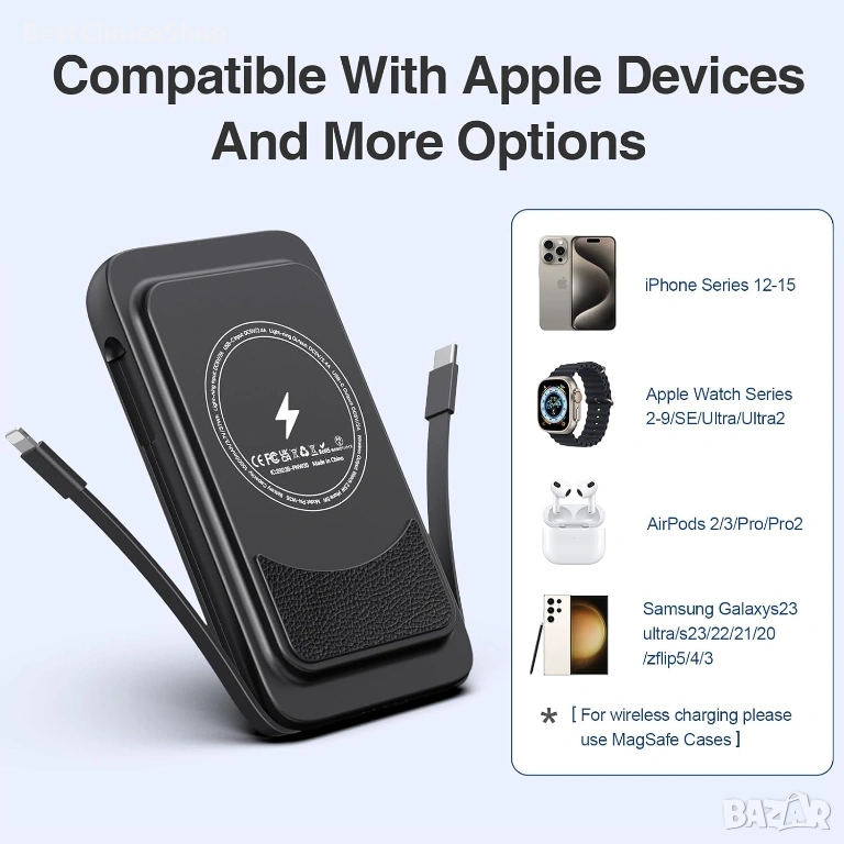 - Вградени 2 кабела за зареждане - 15W USB-C/iOS кабели