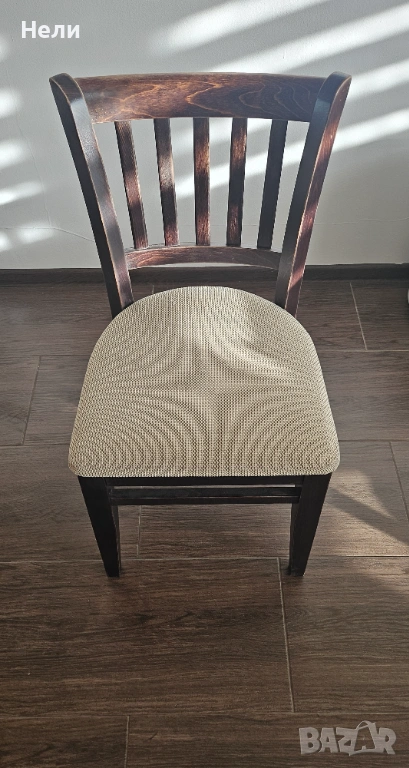 ​Столове: 4 броя масивни дървени столове с ергономична облегалка.