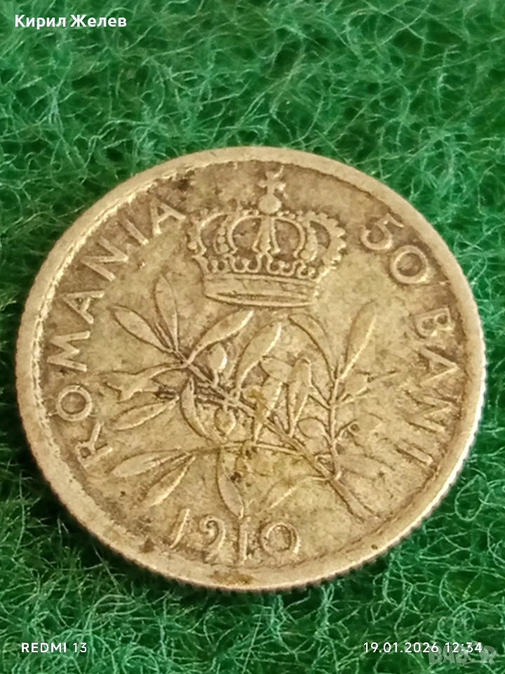 Сребърна монета 50 бани 1910г. Румъния Карол първи за КОЛЕКЦИЯ 53039 → Обява 53149626